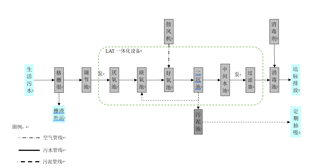 工程爲政府(fǔ)投資,包含污水(shuǐ)收集管路、檢查(cha)井、污水處理終(zhōng)端㊙️,普民環保提(ti)供設備安裝、調(diào)試及運維管理(lǐ)。污水處理終端(duān)包🈲括LAT一體化設(she)備、設備基礎、設(she)備🌏間、調節池等(deng)構築物。污水處(chu)理終端采取普(pǔ)民環保具有自(zì)主知識産權♌的(de)LAT工藝,污水通過(guò)回轉式除污器(qì)進入調節池,在(zài)調節池💘通過提(ti)升泵提升至生(shēng)化單元,污水依(yī)🙇🏻次經過厭氧區(qū)、缺氧區、好氧區(qū)、高♻️效泥水分離(lí)區、過濾區,再經(jīng)過次氯酸鈉殺(sha)菌消毒後達标(biao)🍓回用或排放。